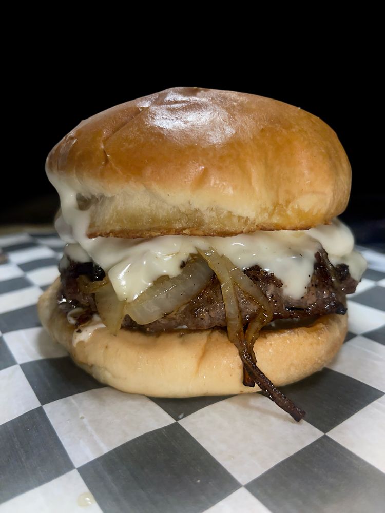 Brioche bun, beef patty, sautéed onions and jalapeños, pepper jack cheese, mayo, house sauce