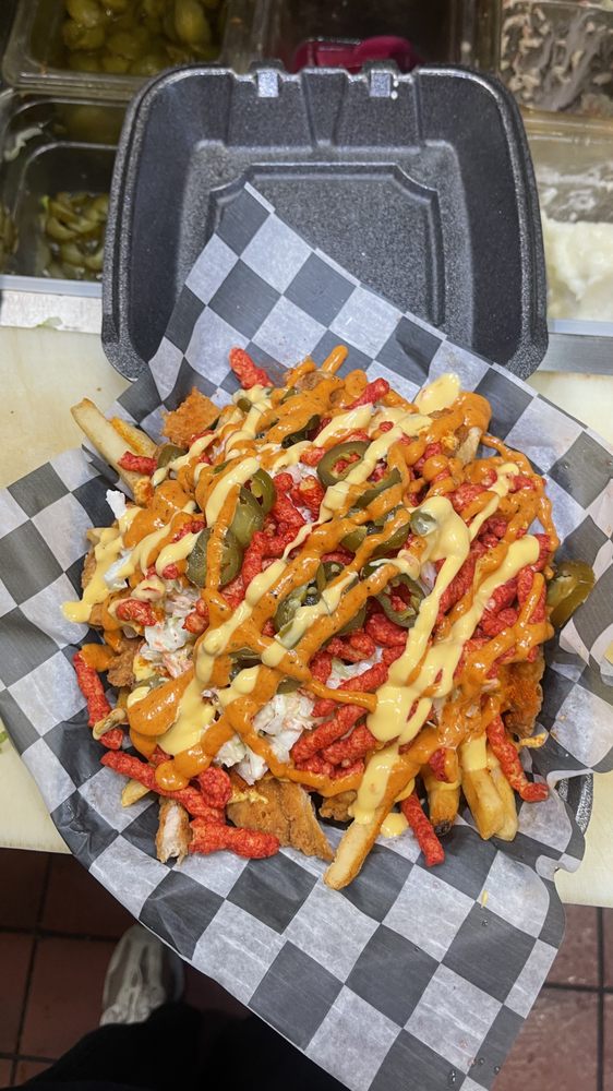 Crispy fried chicken, tangy coleslaw, crispy fries, pickles, mayo, and house sauce on a -inch sub bun.